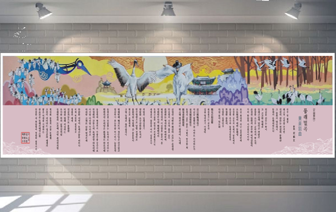 | 내용 | 찬란한 여명이 동래고을에 비추니 청룡의 해에 조선독립선언 33인의 충혼이 동래학춤으로 승화하여 AI Image로 미래를 향해 달려간다. 전설속 봉래산의 학무리가 운집한 것은 동래도처에 소나무 군락지 학소대(鶴巢臺)에 학의 서식처가 되어 온천천 들판에 노니는 학의 자태가 한과 흥이 내재된 동래사람들의 자연스러운 학춤으로 탄생하였다. 임진왜란과 일제강점기의 초토화된 동래는 충렬공 송상현부사와 일제에 항거한 동래성민의 투철한 애국과 독립정신이 현재를 투영하고 있다. 동래고을을 휘감아 흐르는 온천천의 만년대, 세병교는 조선시대 동래최고의 정현덕 부사가 훈련하는 병사들을 바라보며 동래고을의 번영과 안녕을 기원하는 태평원 시(詩)를 지어 널리 알렸다. 역사와 충절의 고장 동래에 오롯이 피어나는 정신혼의 세계가 밝은 미래를 기원하는 살기좋은 동래르네상스에 벅찬 희망으로 새겨질 것이다. |