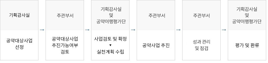 - 내부평가 : 정기 점검 및 평가(1월, 7월), 공약사항 추진보고회(연 1회 이상, 필요 시 수시), 부서 자체평가(반기별)