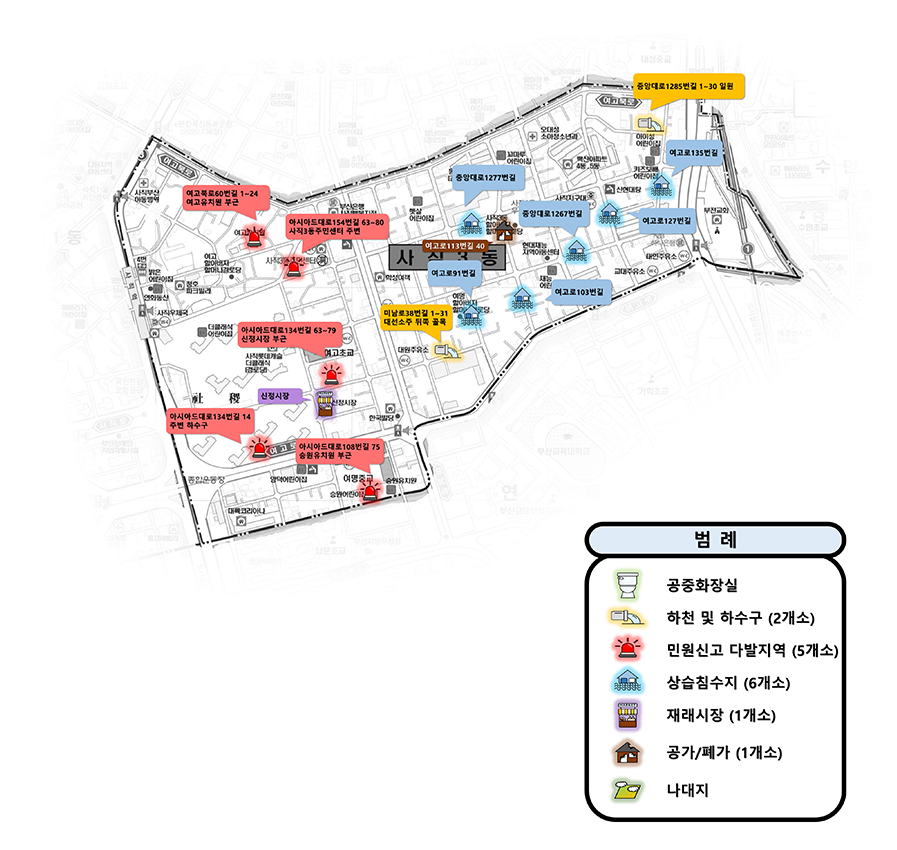 - 대상 : 취약지역, 사회복지시설, 기타 민원발생지역 등
